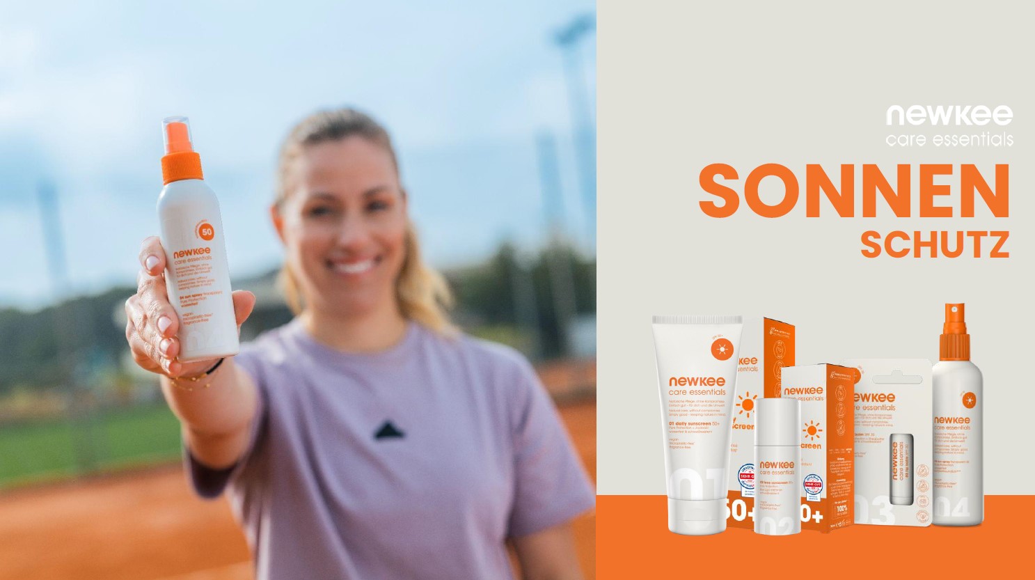 Manuel Neuer musste sich mehrfach wegen weißem Hautkrebs operieren lassen. Angelique Kerber lebt mit einer UV-bedingten Pigmentstörung. Ihre Erfahrungen zeigen: UV-Schutz ist kein Nice-to-have, sondern ein Must-have – im Spitzensport genauso wie im Berufsalltag. Auf die Sonnencreme von newkee können Sie sich verlassen. Mit Anti-Aging Effekt und sehr hohem Sonnenschutz (SPF 50+), ohne Mikroplastik und Duftstoffe.